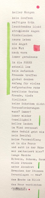 Während der Zeit des Wartens, der Kontaktsperre, der täglich neuen Herausforderungen, ergeben sich Freiräume. Gedanken, Inspirationen, Momentaufnahmen finden in der alten fast 100 Jahre alten Conti eine Gesprächspartnerin.